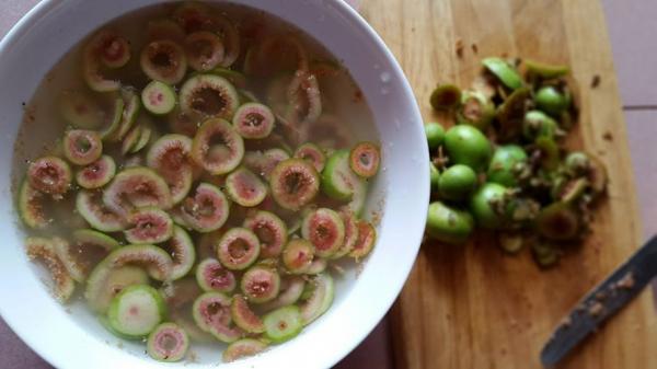 Bước 1: Quả sung thái mỏng ngâm với nước chanh cho khỏi bị thâm.
